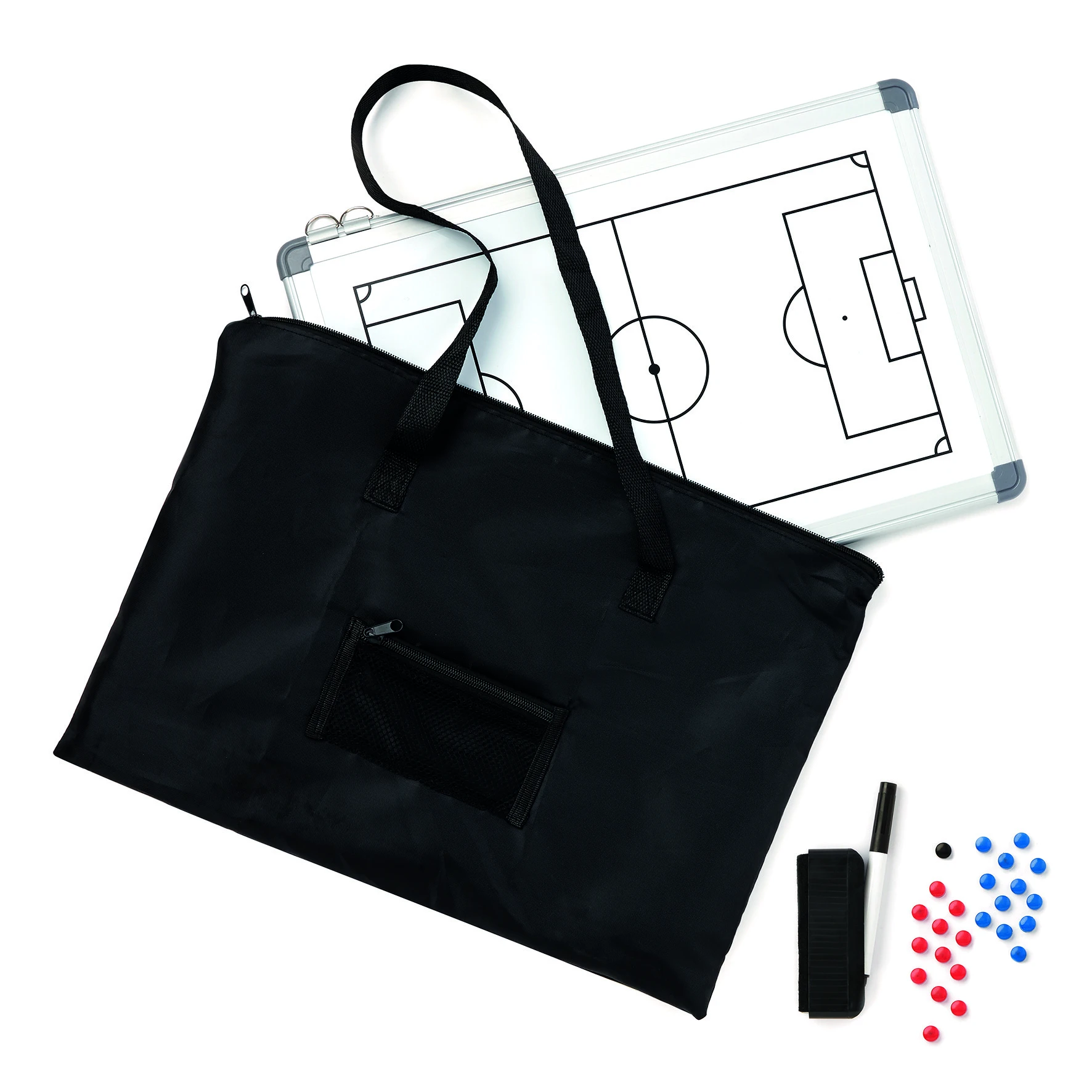 Formatul compact permite transport și utilizare facilă. Setul include magneți, două markere lavabile și radieră, pentru