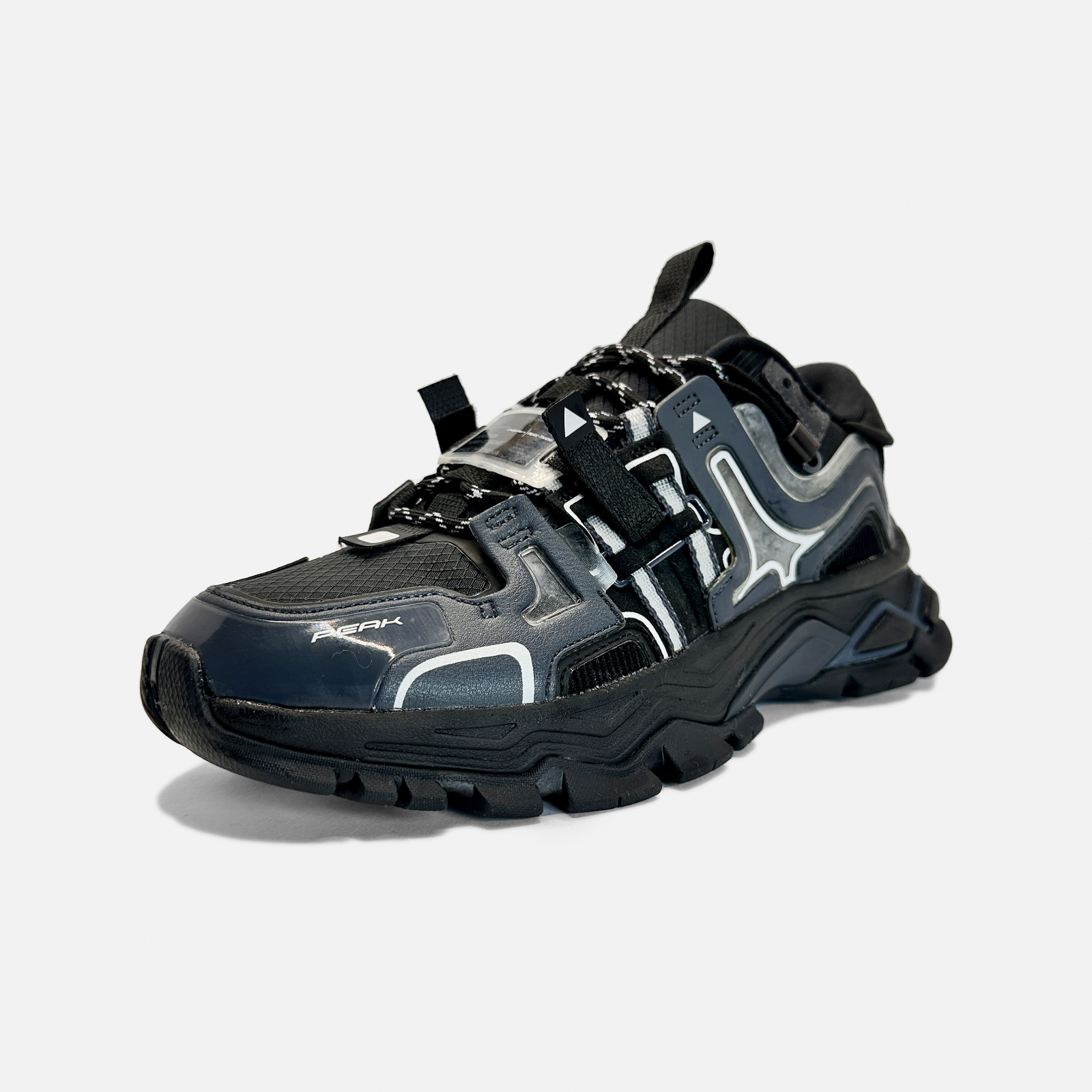 Incaltaminte sport tehnica, rezistenta si foarte aderenta. Talpa utilizeaza tehnologia taichi si asigura o sustinere foarte buna impotriva socurilor. Exterior din piele sintetica si material textil.