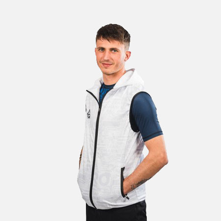 Dispune de doua buzunare laterale si gluga.