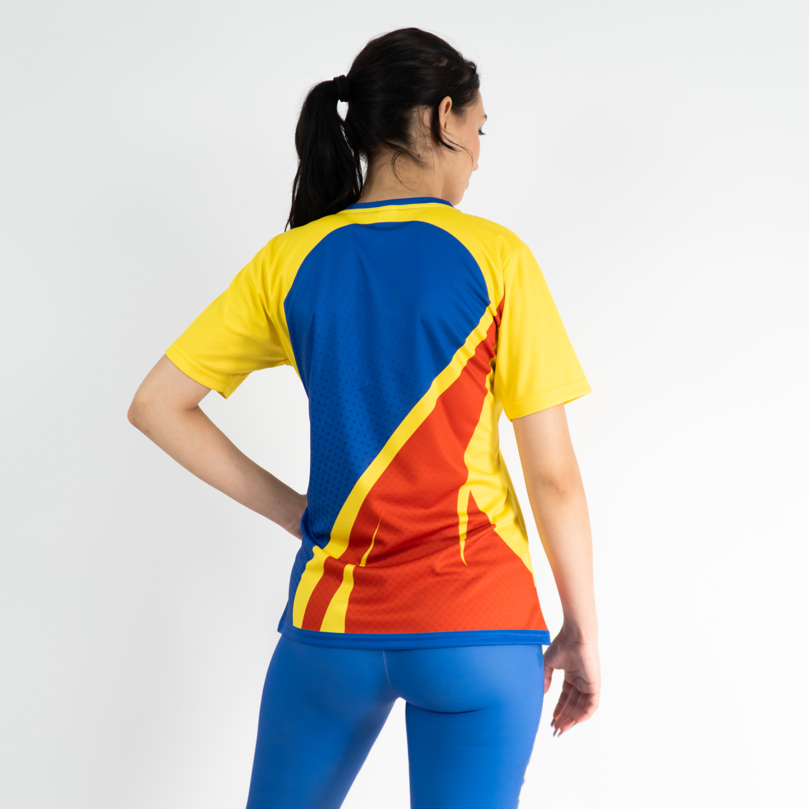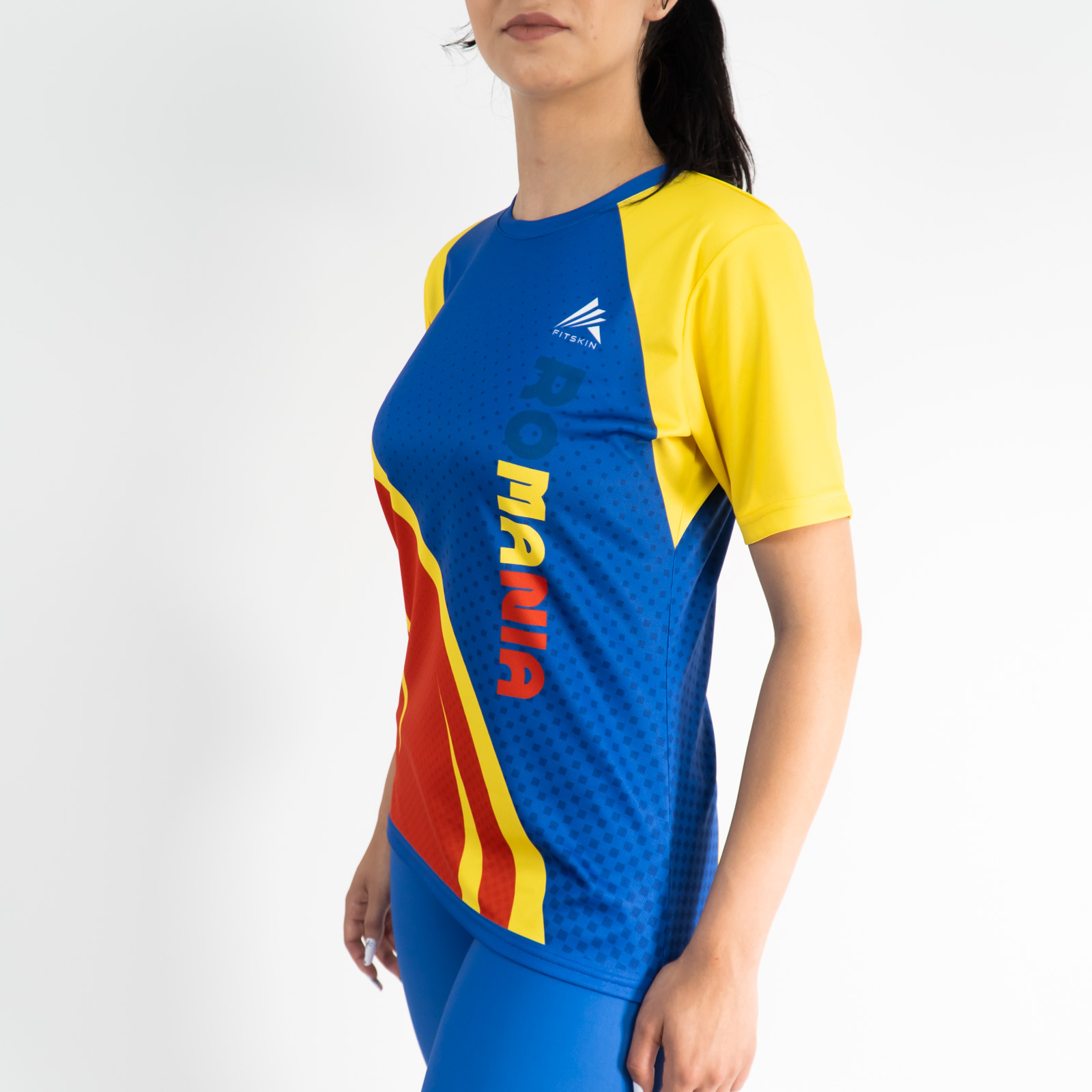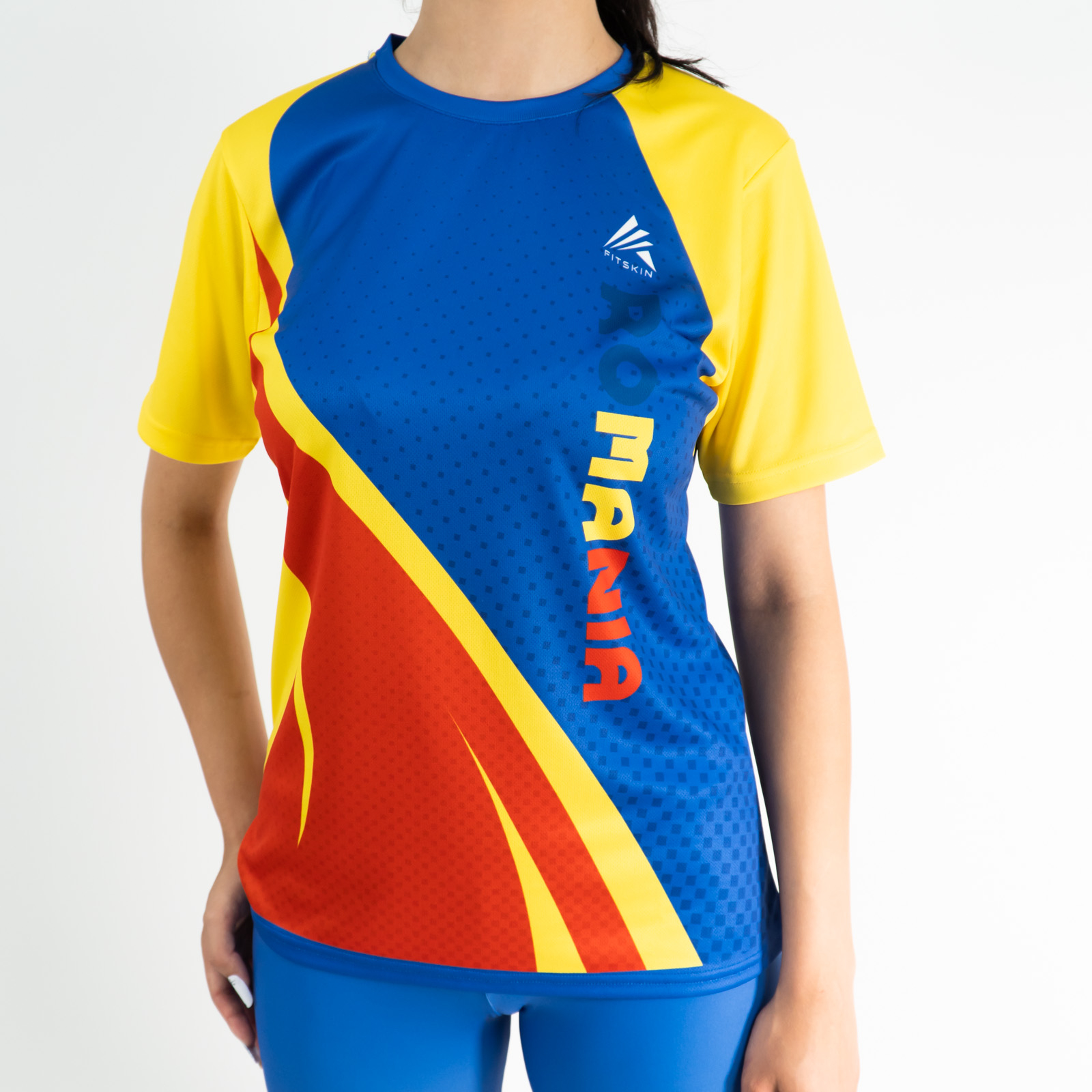 🔥 Antrenează-te cu stil și susține culorile României! Tricoul Fitskin România este conceput pentru sportivele care doresc confort maxim, respirabilitate și un design vibrant inspirat din tricolorul românesc.