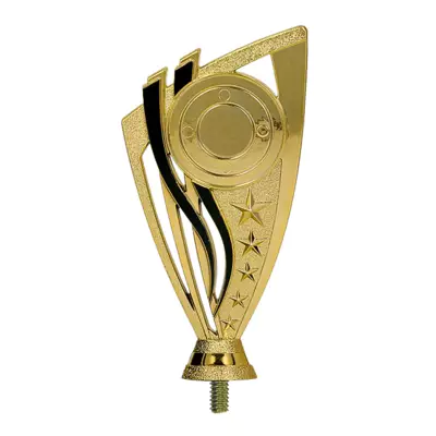 Această figurină robustă și elegantă, realizată din plastic, combină culorile aurie și negru pentru un